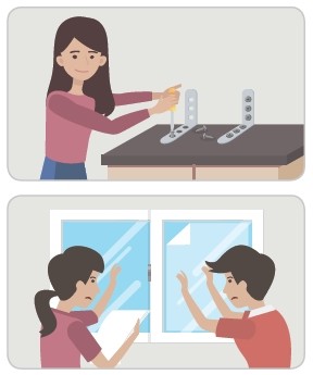 - 가구나 가전제품이 흔들릴 때 넘어지지 않도록 고정해 둡니다.