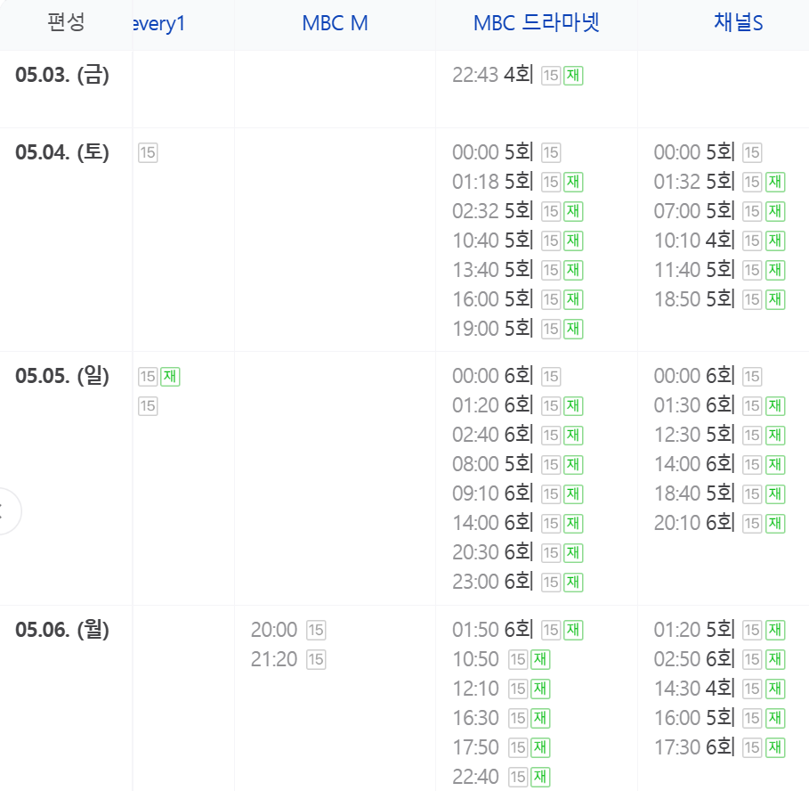 5월 3일 ~ 5월 6일 재방송 편성표입니다.