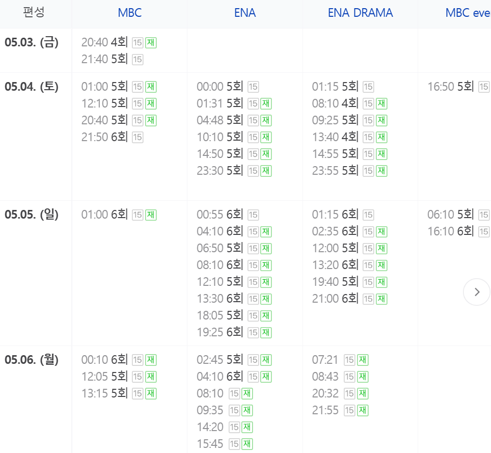 5월 3일 ~ 5월 6일 재방송 편성표입니다.