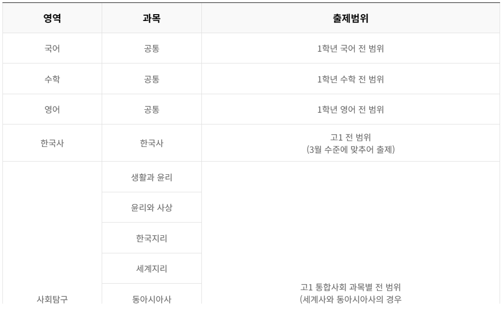 고1 출제 범위