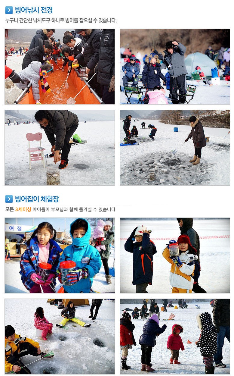 2024 1월 축제 가볼 만한 곳에서 빠질 수 없는 겨울철 얼음판 위에서 펼쳐지는 빙어 낚기와 겨울 레포츠입니다.