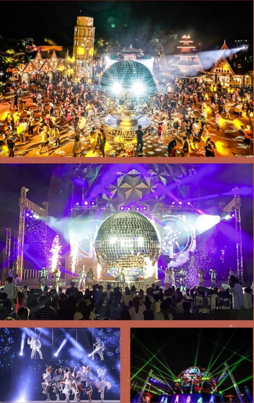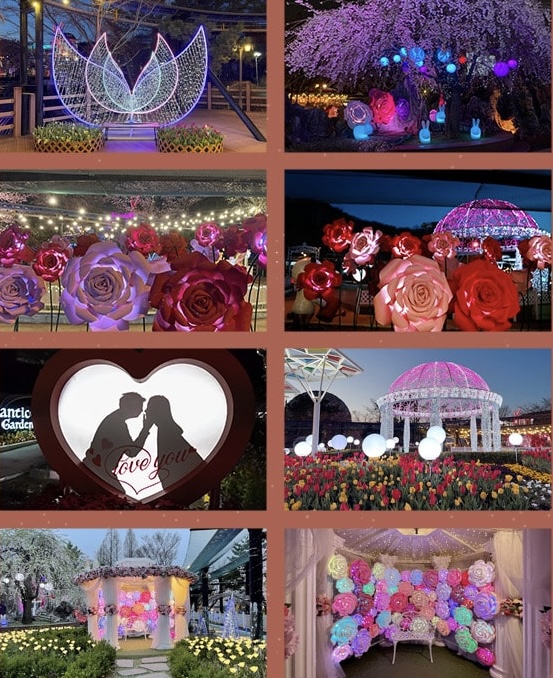 국내 최대규모인 6m 크기의 미러볼이 등장해 빛축제의 하이라이트를 선보이며, 강렬한 음악과 조명, 풀 컬러 레이저쇼도 관람할 수 있습니다. 로맨틱가든에서는 대형 LED꽃이 형형색색 빛으로 낭만적인 분위기를 연출합니다. 공원 곳곳에는 보름달, 초승달 등 다양한 포토존이 있어 인생샷을 남기기에 너무 좋을 것 같습니다.